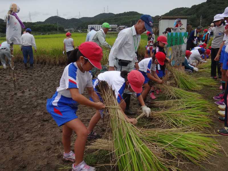 地元の方からひとつずつ作業の仕方を教わりながら、自分たちで植えた稲を大切に収穫していました。