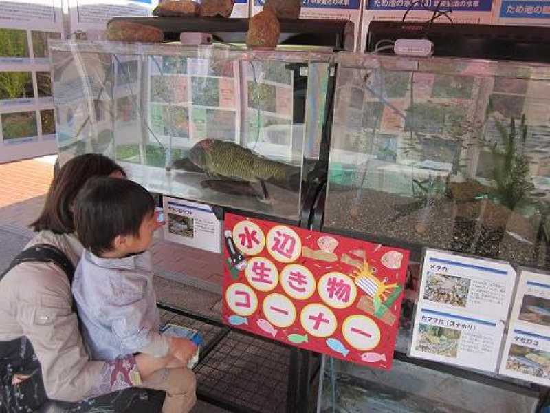 5月3日・4日の2日間、加古川市役所前広場にて踊っこまつりが開催され、ため池についてのパネル展示や、ため池や川に棲む魚類の水槽展示、カメのタッチプール、魚つりゲームなど、小さな子どもから大人まで多くの方々にご覧頂きました。